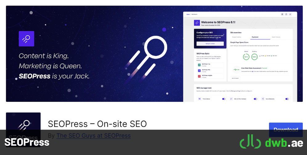 SEOPress is a strong contender for anyone looking for an all-in-one SEO solution. It combines the features of Yoast and Rank Math while maintaining an easy-to-use interface. This plugin is particularly favored for its white-label capabilities, making it a go-to choice for agencies like DWB.